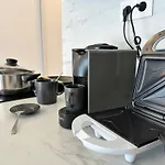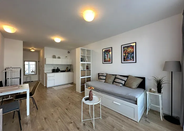 Oprócz urządzenia do parzenia kawy/herbaty, do dyspozycji Gości jest również pełnowymiarowa kuchnia z własnym wyżywieniem, w tym czajnikami elektrycznymi, lodówką i szklanymi naczyniami. 1-pokojowy apartament leży 15 km od lotniska Bratyslawa.